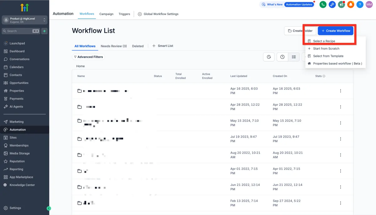 Click Create Workflow > Select a Recipe.