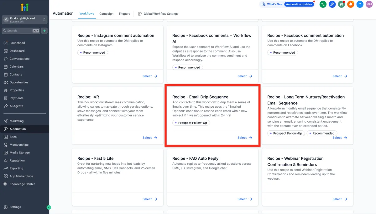 Select the recipe Email Drip Sequence.