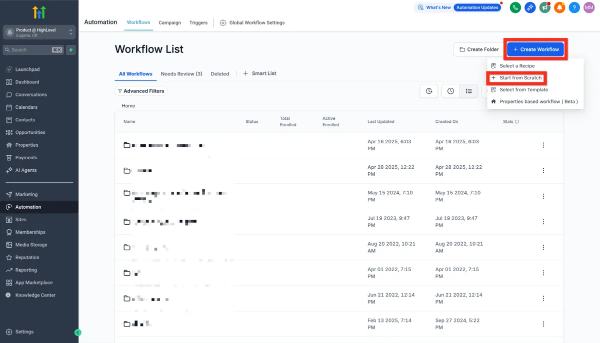 Click Create Workflow > Select Start from scratch.