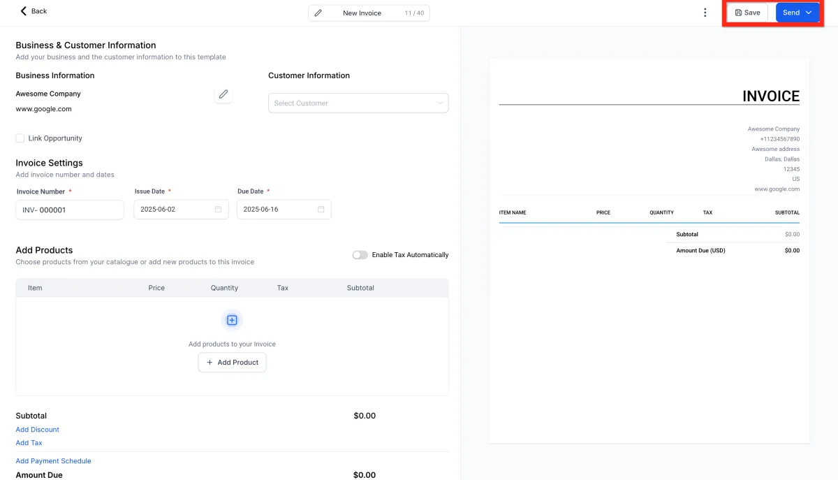 Ready to send your first invoice? Great! Here's the simplest way to create one: