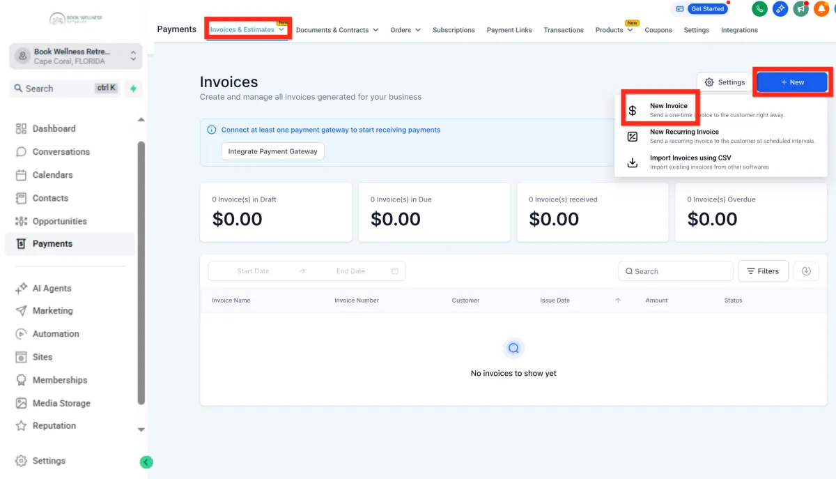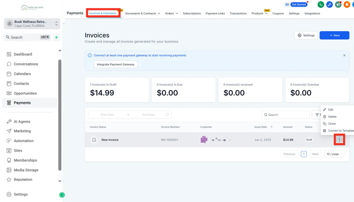Keeping track of your invoices helps you stay organized and ensures timely payments. Here's how to quickly manage your existing invoices: