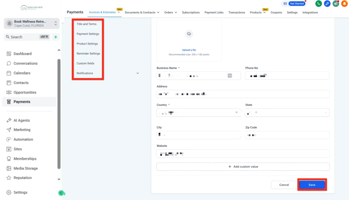 For Unpaid Invoices: Upload a new logo to your Media Library and make sure your Business.