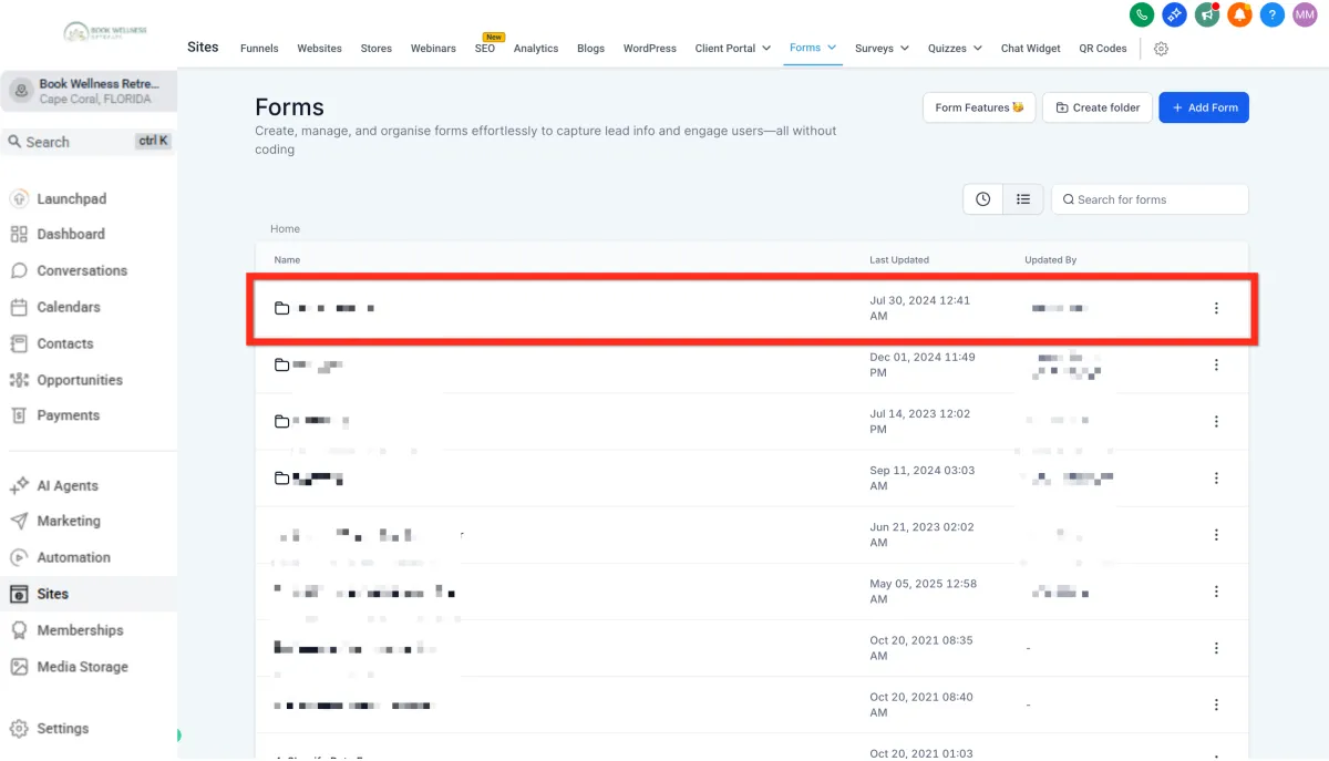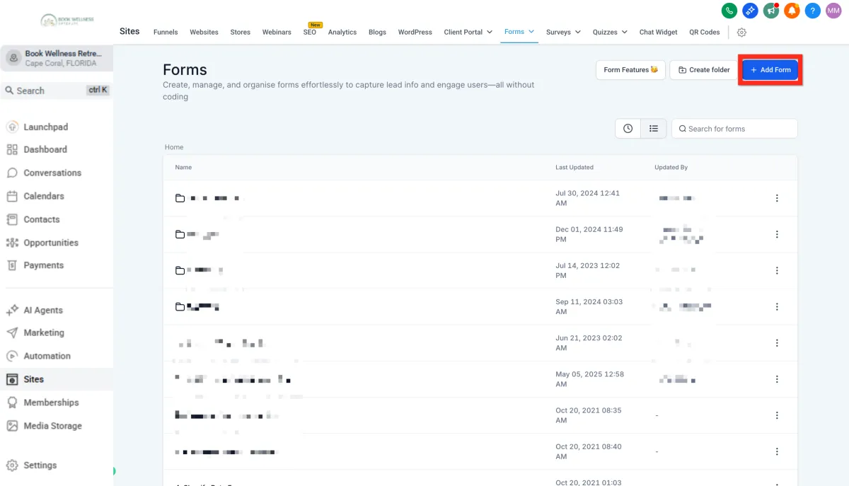 Navigate to the Form Builder (either through the Form Picker in the Funnel Editor or directly).