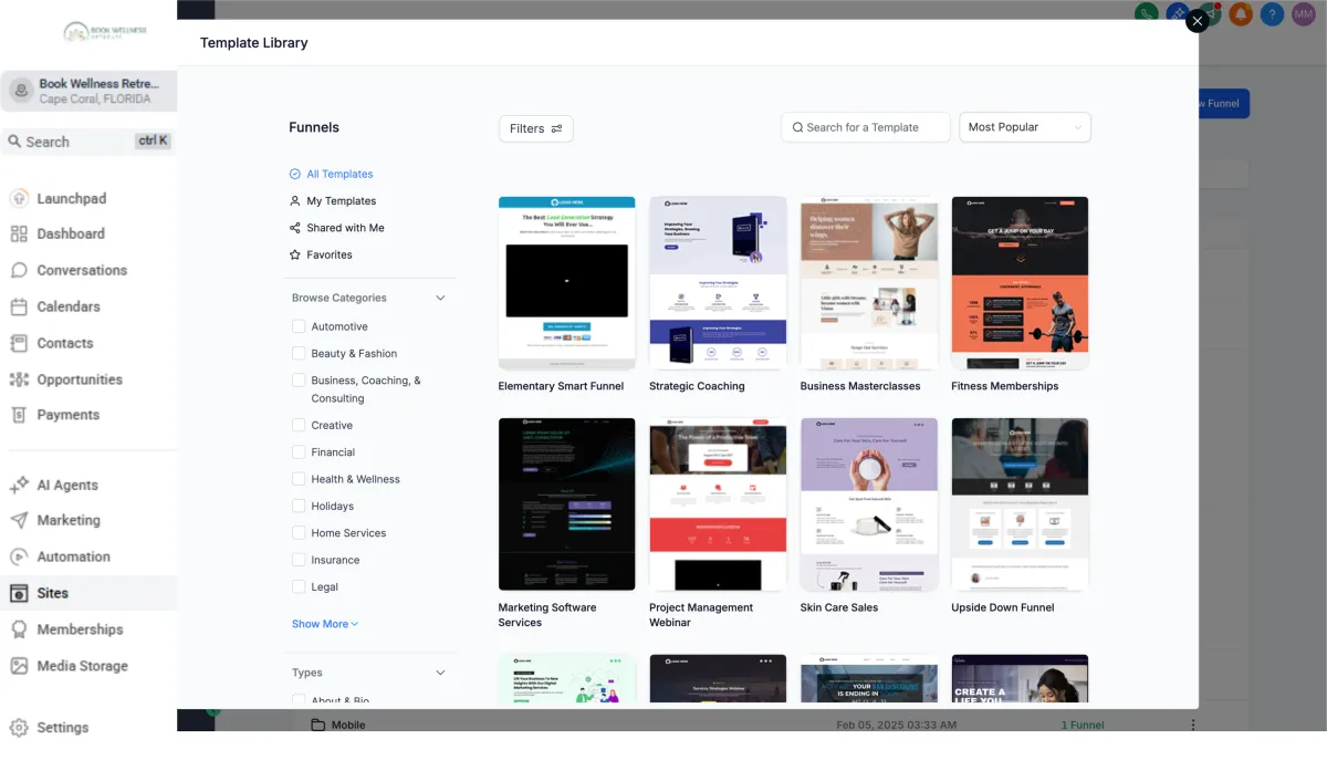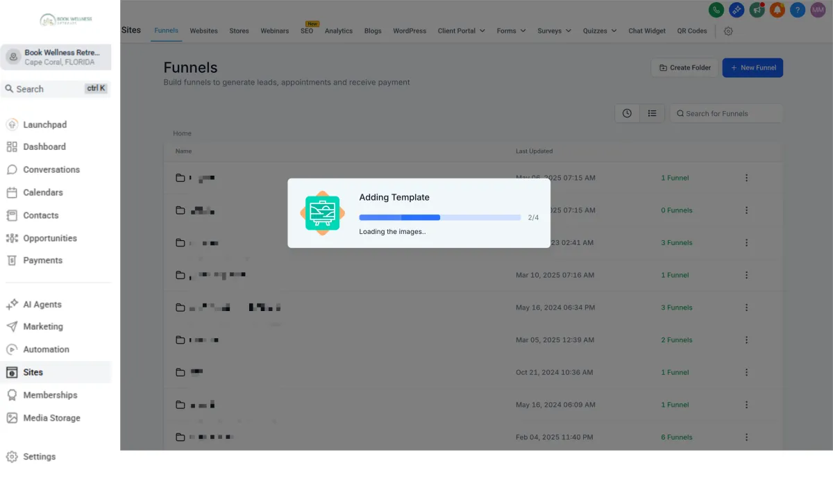 Navigate to Sites > Funnels