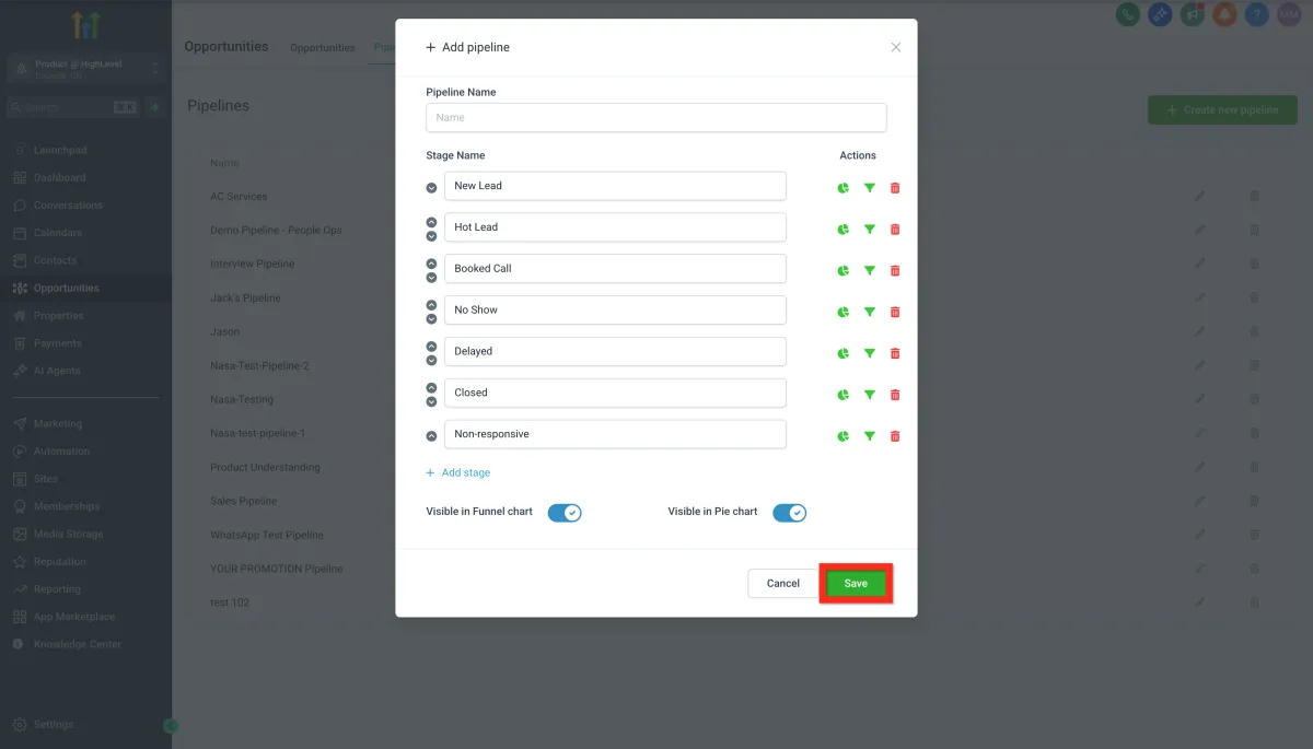 Fill in the details (name, stages, etc.) and click Save.