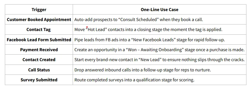 Other Common Triggers & Quick Use Cases