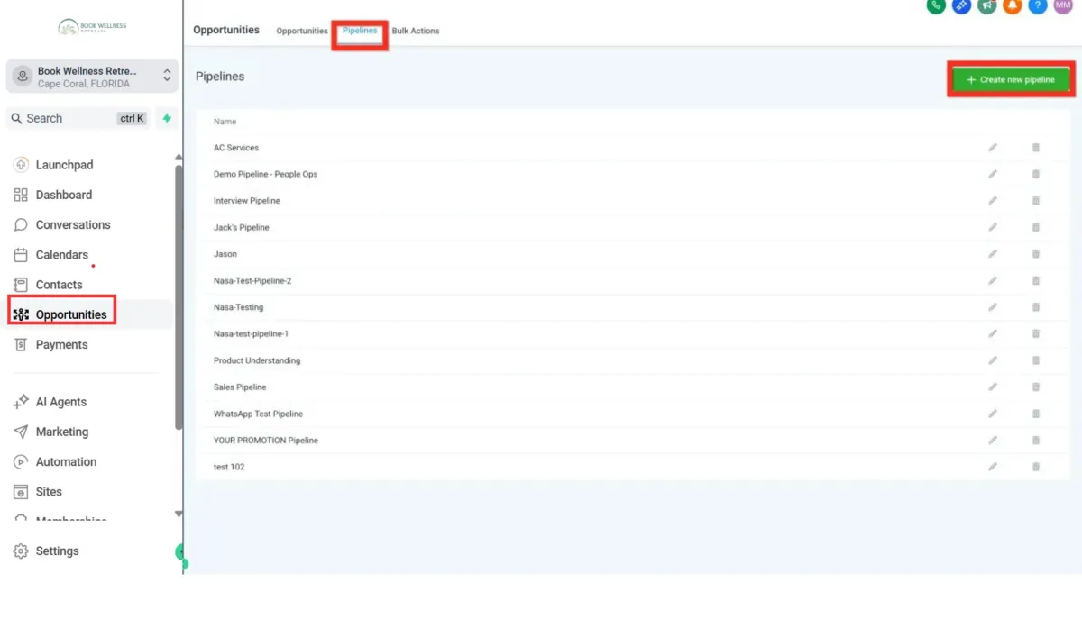 Click Create New Pipeline.