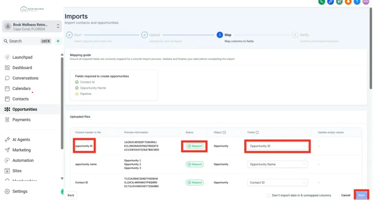 Map file columns to Opportunity fields.