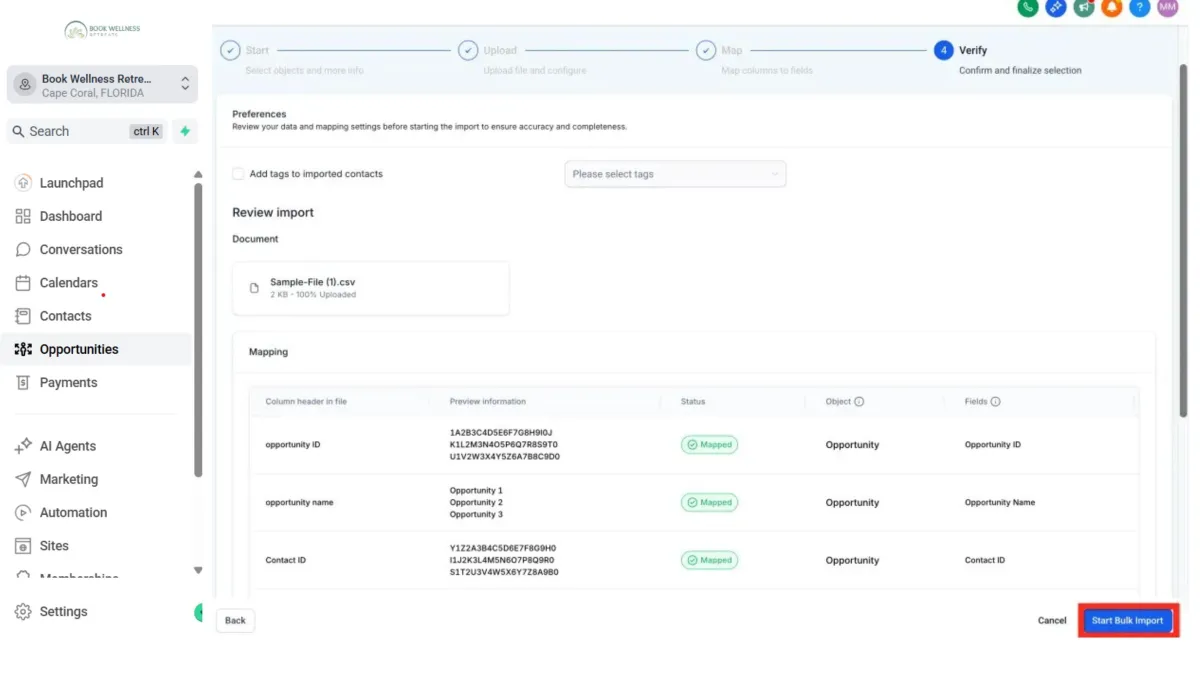 Verify all information and click Start Bulk Import.