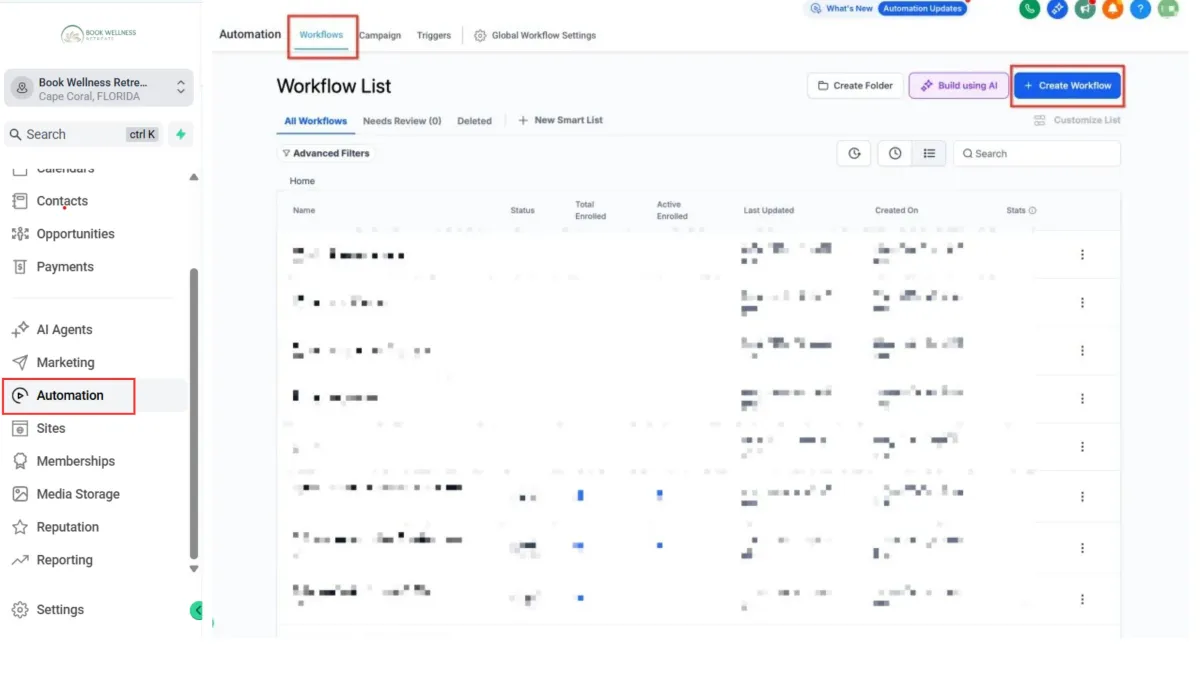 Go to Automation → Workflows in the left menu.