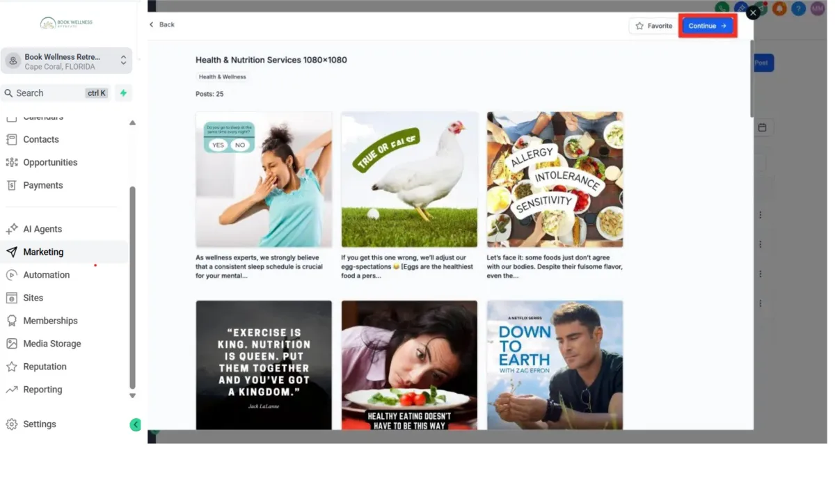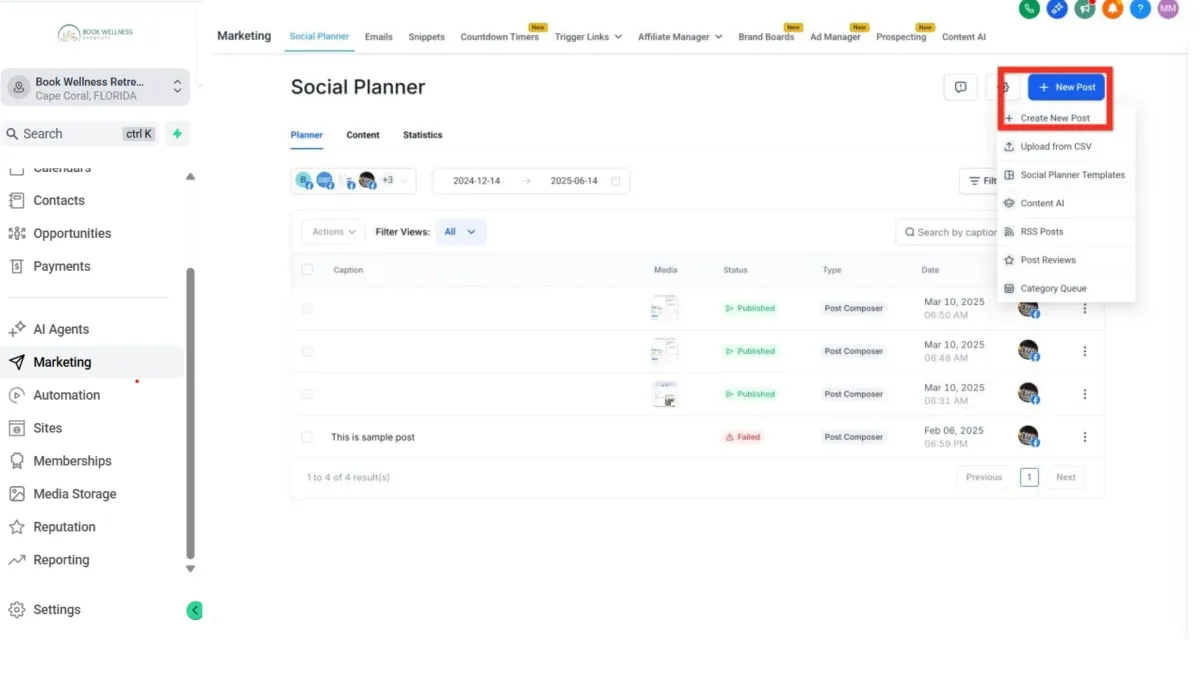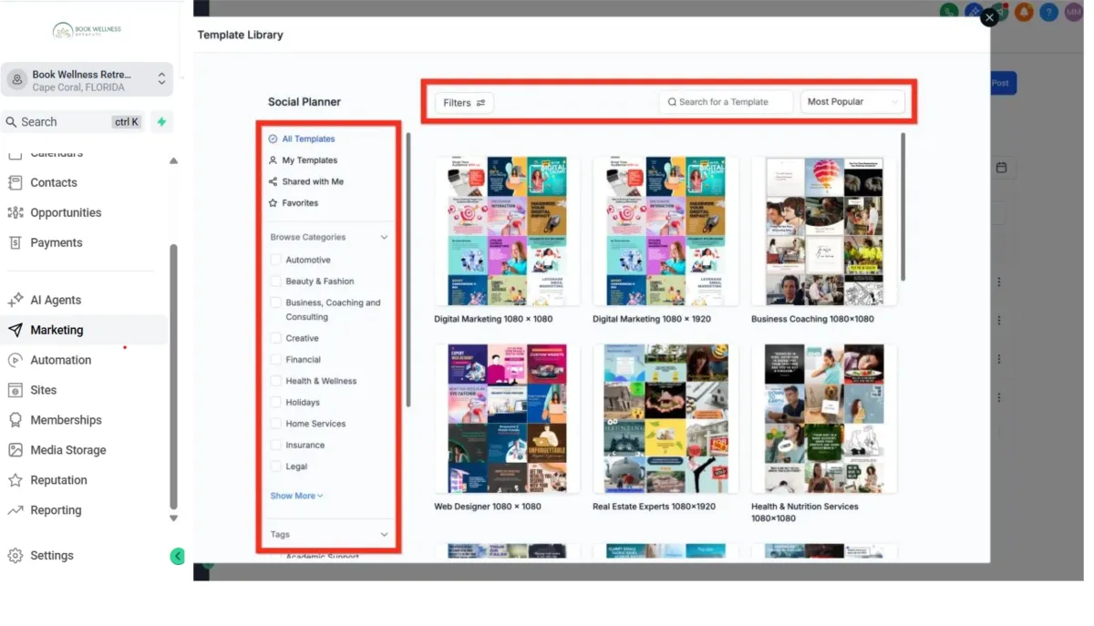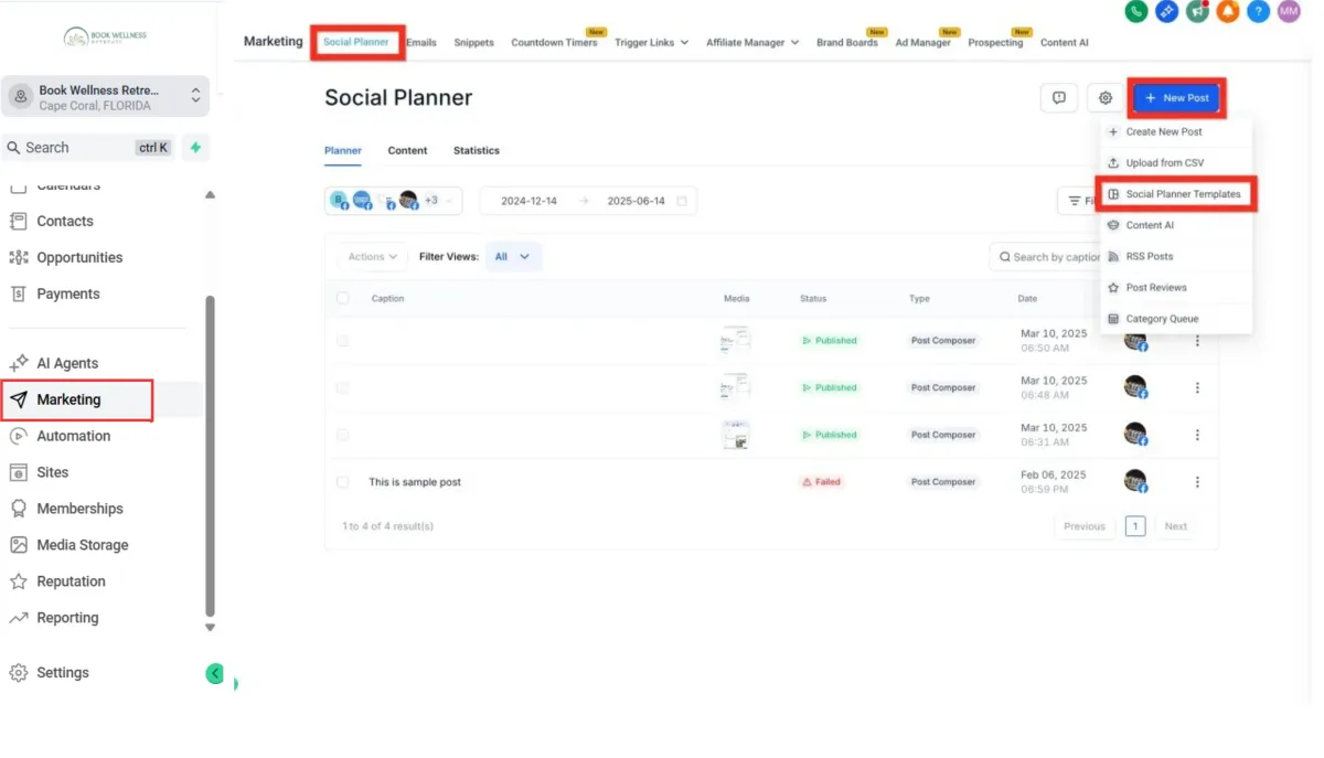 Navigate to Marketing > Social Planner > New Post > Social Planner Templates.